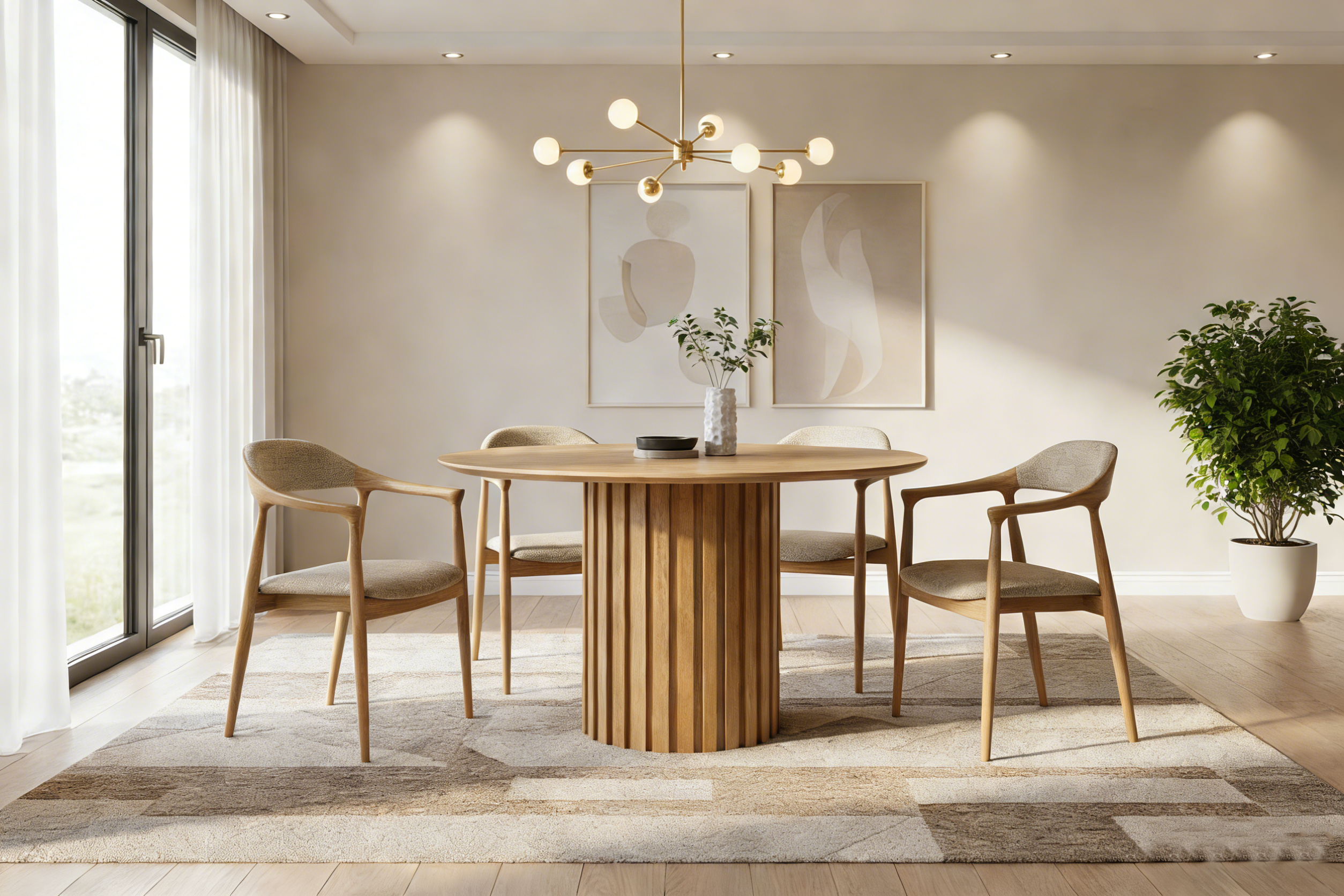 Inspired by Scandinavian design philosophy, this round dining table cleverly combines natural materials with modern, minimalist lines, making it the focal point of your dining space.